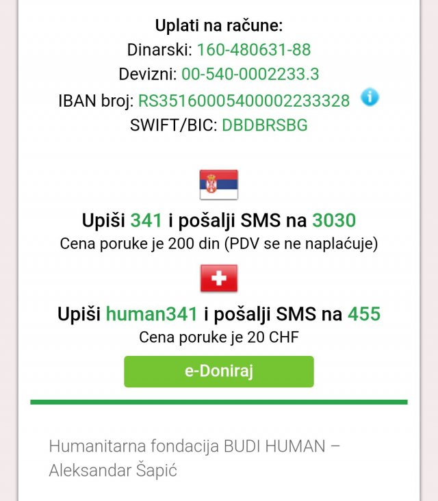 Трошкови лечења у великој мери превазилазе могућности породице зато позивамо све наше читаоце да се прикључе акцији прикупљања новчаних средстава слањем смс поруке 341 на број 3030.